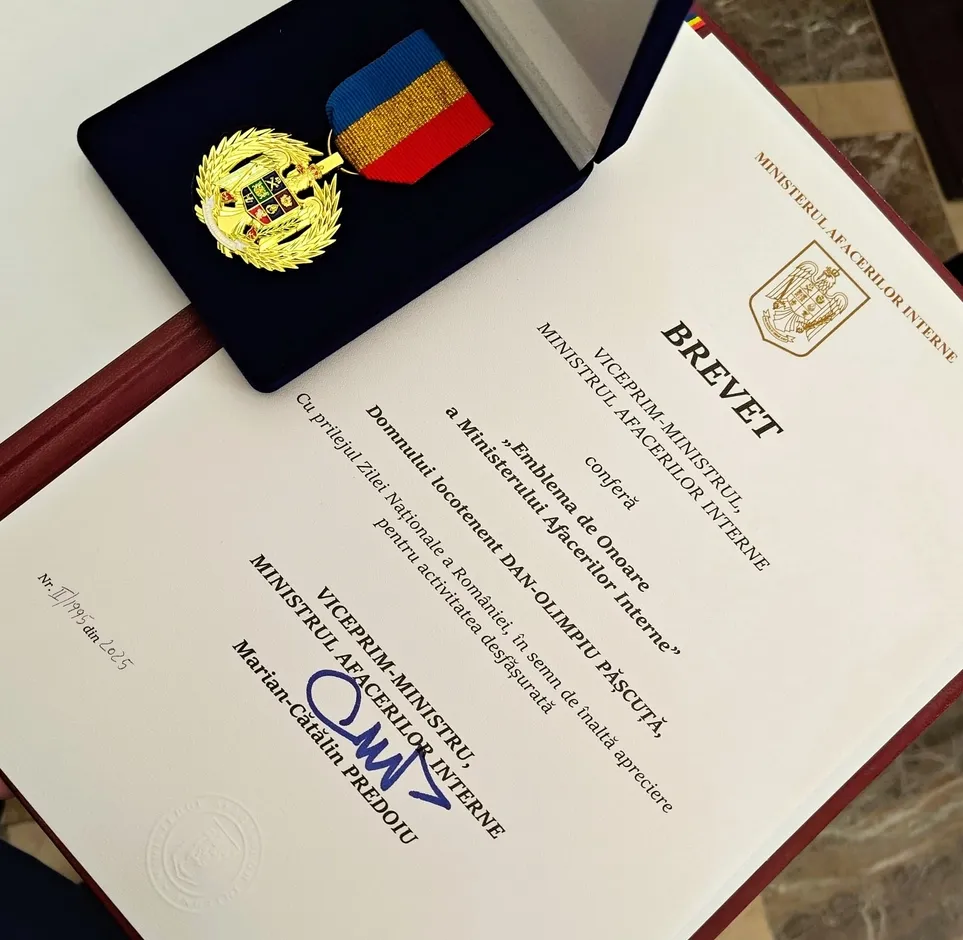 Cu ocazia aniversării Zilei Naționale a României, miercuri, 03 decembrie a.c., în cadrul unei ceremonii desfășurate la sediul Ministerului Afacerilor Interne, Locotenentul Dan–Olimpiu Pășcuță a fost onorat cu „Emblema de Onoare a Ministerului Afacerilor Interne”.