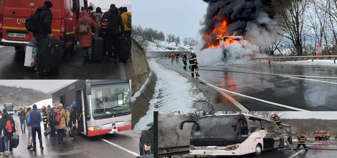 Un autocar a luat foc lângă Sighișoara