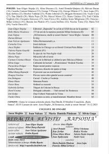 De la Sibiu am primit cu bucurie un nou număr al revistei de cultură RAPSODIA, publicație care confirmă, ediție după ediție, vocația de a aduna laolaltă spirite creatoare din țară și din diaspora românească. Neobositul scriitor, poet și critic literar Ioan Gligor Stopiță, redactor-șef al revistei, ne propune și de această dată un număr dens, coerent și luminos, în care se regăsesc nume importante ale scrisului contemporan, din România și din afara granițelor ei.
